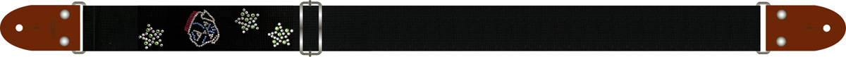 ファセット・カット加工によって美しい煌きを生み出す高品質ラインストーンを使い、ひとつひとつ手作業によってデコレーションを施したギターストラップです。